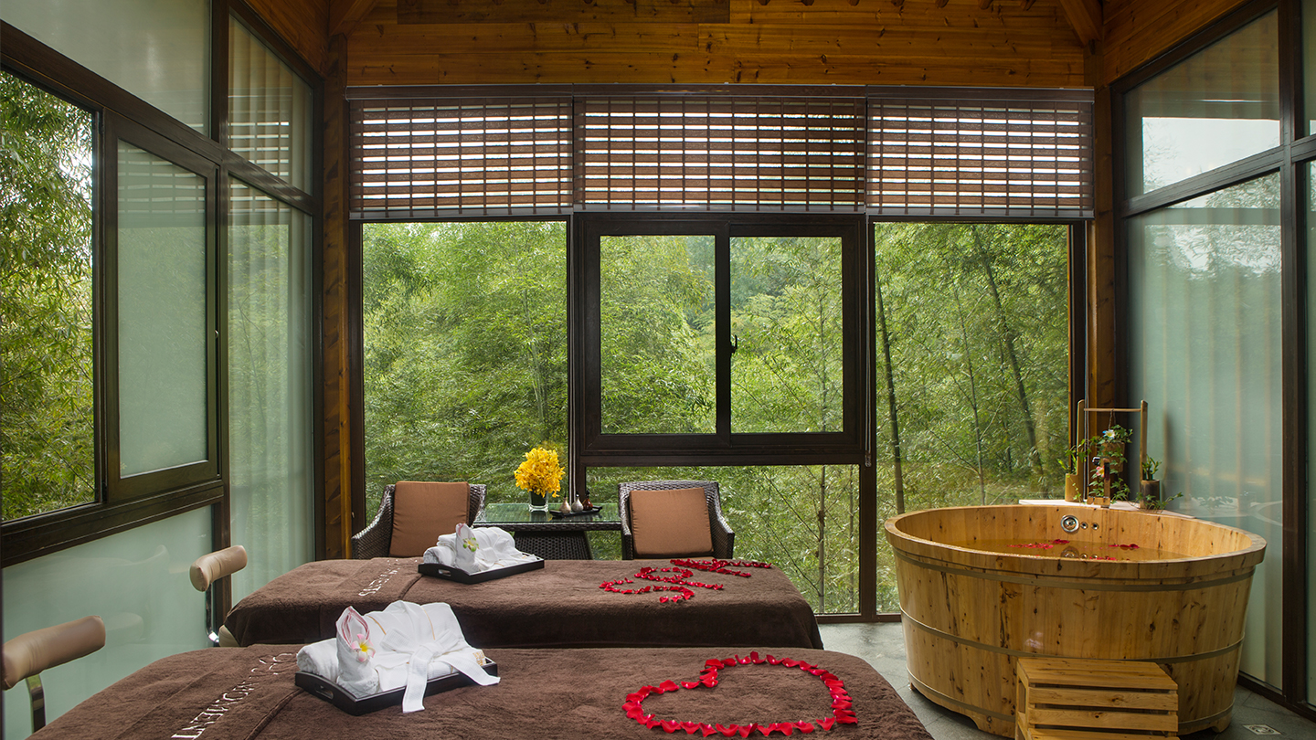御尊SPA,一场身体和心灵的放松。瑞典式背部护理、芳香纤体瘦身、活力古法、颅内耳灼疗法、头部引流,排毒养颜润泽面色。宜静宜动,由内而外,全方位体验所有温泉享受,精设各种康乐设施,配备高档保健理疗房、健身房等。自然之景和自然养生相结合,获得心灵的放逐和回归。