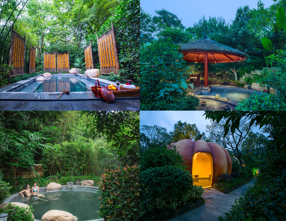 6大泡池区,60处户外露天泡池,畅享世间温泉欢愉之精髓。自然区,古树竹林间,与天地浑然相连; 情侣区,隐于层林,浪漫无边; 加料区,取名贵稀有之材,汲养生保健之效; 动感区,或依山而下,或喷薄而出,尽显美妙动感; 亲子区,卡通造型泡池,恍若梦幻童话; 竹稍区,观景绝佳处,好似沐云端